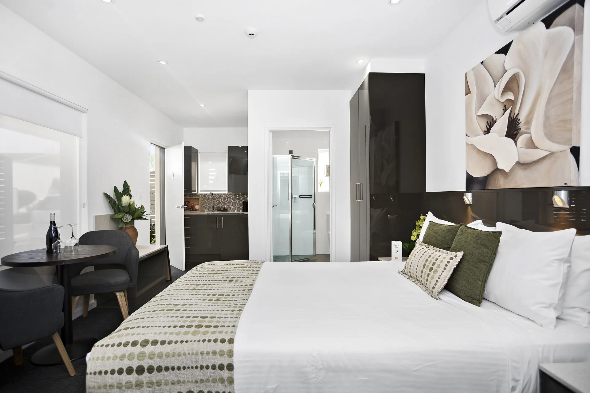 Interconnecting Studios, expertly crafted with bespoke furnishings, elegant granite benchtops, warm lighting, and individually styled...